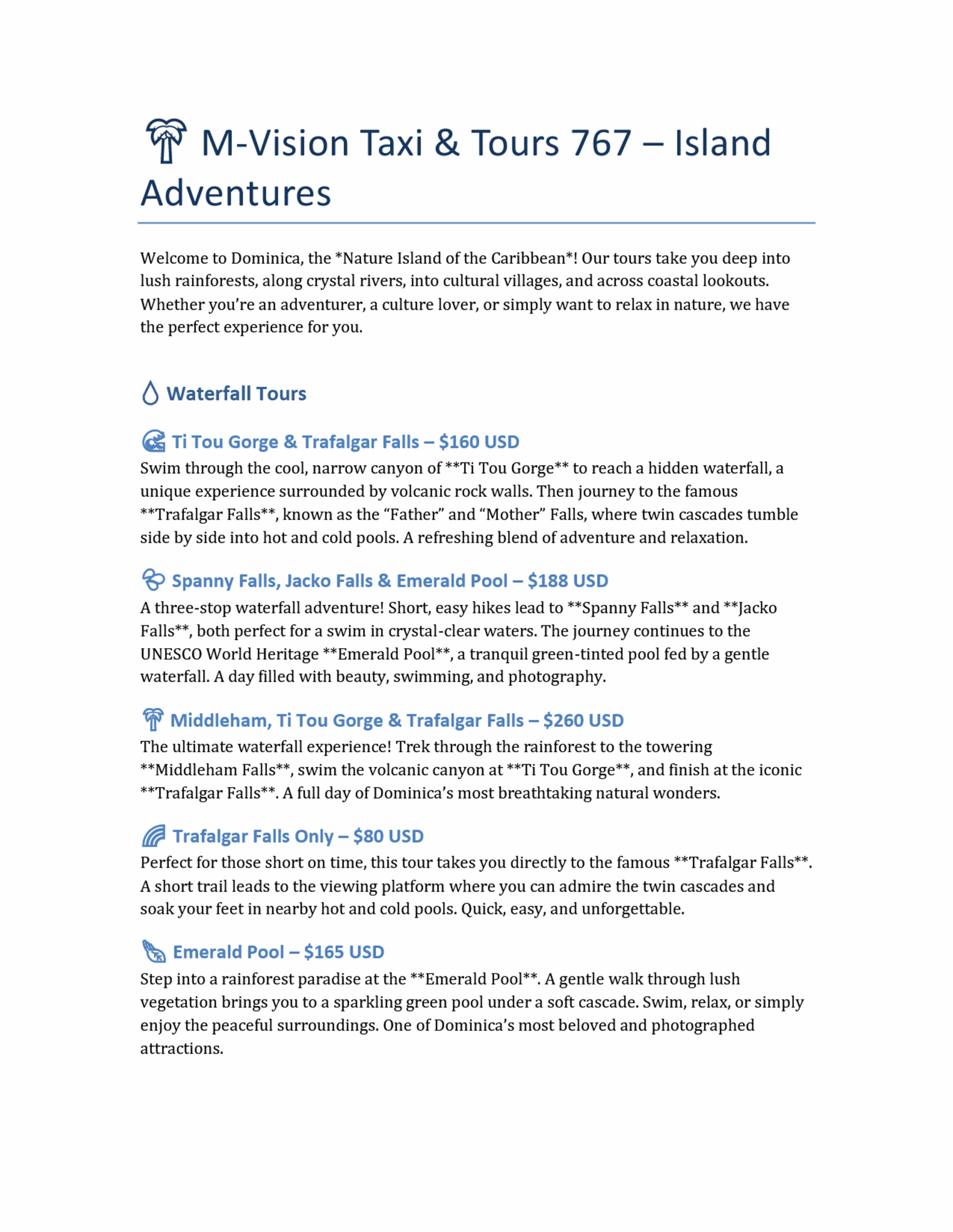 All prices are in USD currency. Ask during booking process for localized XCD pricing.